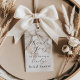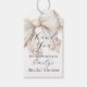 Simple, élégant et si féminin, ce favor de mariage ou étiquette de cadeau a un grand ruban blanc ivoire en aquarelle incliné sur un côté ajoutant une touche de charme. Un modèle de texte élégant avec une écriture manuscrite et des polices serif est inclus pour personnaliser avec le nom de l'invité d'honneur et le texte souhaité. Ces étiquettes sont un bon choix pour les faveurs de fête et les petits cadeaux pour vos invités.