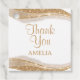 Étiquettes remerciement pailletées or élégantes. Ajoutez une touche d'élégance à votre célébration avec cette chic étiquette remerciement pailletée or. Conçue avec des accents de vague en faux or scintillant et un fond texturé blanc doux, cette étiquette moderne est parfaite pour les anniversaires, les enterrements de vie de jeune fille, les baby showers, les mariages, les anniversaires de mariage et tout événement élégant. Entièrement personnalisable - personnalisez le nom. Une belle touche pour les sacs cadeaux, les faveurs de fête ou les friandises pour les invités.