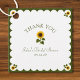 Égayez vos faveurs de bapteme de mariage avec cette étiquette de remerciement rustique de tournesol. Avec une bordure vert foncé audacieuse, un centre blanc festonné et une illustration de tournesol joyeuse, cette étiquette est la touche finale parfaite pour un bapteme de mariage d'automne ou une célébration champêtre. Personnalisez le nom et la date pour le rendre unique. Parfait pour attacher à des savons, des bougies ou des pots Mason—vos invités adoreront le détail ensoleillé !