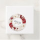 Une étiquette de faveur romantique avec des roses rouge rubis et des florales douces blanches,