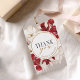 Une étiquette de faveur romantique avec des roses rouge rubis et des florales douces blanches,