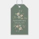 Une jolie étiquette pour vos cadeaux de fête d'anniversaire. Carte vert sauge avec une fleur sauvage aquarelle est présentée.