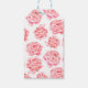 Étiquettes de remerciement pour cadeau d'enterrement de vie de jeune fille à Paris avec calligraphie script et tour Eiffel florale rose.