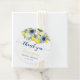 Étiquettes de remerciement pour une douche nuptiale jaune clair et bleu avec des fleurs de citron. Elle a trouvé son âme sœur.