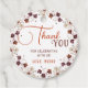 Montrez votre appréciation à vos invités avec ces élégantes étiquettes rondes de faveur, parfaites pour votre baby shower ou toute célébration spéciale. Ornées d'une belle couronne circulaire de fleurs délicates inspirées de l'automne dans des tons de bordeaux, de crème et de rouille, ces étiquettes dégagent une atmosphère charmante et sophistiquée. Personnalisables avec votre nom, elles sont idéales pour attacher aux faveurs de fête, aux sacs cadeaux ou aux friandises, faisant de votre message de remerciement un élément mémorable de votre événement.