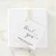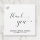 Étiquettes de remerciement pour baby shower de mariage avec le message "Merci" en calligraphie noire avec un paraphe en forme de cœur à la fin et votre nom, titre de l'événement et date en dessous, sur un fond blanc. Le verso est d'un noir uni. Les couleurs de fond peuvent être modifiées selon vos préférences. La mise en page simple et minimaliste avec beaucoup d'espace ouvert donne à ce design une touche moderne et la calligraphie et le cœur lui donnent une touche romantique. Ces étiquettes élégantes et chic ajoutent une touche personnelle à vos cadeaux.