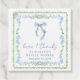 Élégantes étiquettes de remerciement pour la fête de fiançailles avec des cadres à l'aquarelle florale bleue et verte vintage inspirés du grand millénaire, un délicat nœud coquette bleu à l'aquarelle, "amour + merci" mis en valeur dans une écriture calligraphique bleue élégante, et le nom de la mariée et la date de la douche dans une typographie serif classique.