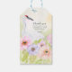 Cette étiquette de remerciement pour cadeau présente une aquarelle peinte à la main d'une élégante grue blanche nichée parmi des anémones douces roses, violettes et pêche. Symbolisant la dévotion et les nouveaux débuts, le design floral romantique ajoute une touche finale charmante aux fêtes de mariage ou à l'emballage de cadeaux.