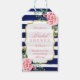 Étiquettes-cadeau Remerciements Fleurs Roses et Rayures Bleues pour