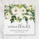 Étiquettes de faveur de mariage floral avec une bordure supérieure comportant des roses blanches et de la verdure peintes à la main à l'aquarelle avec le message "Remerciements Mani" dans un script manuscrit charmant et votre nom, le titre de l'événement et la date ci-dessous. Le dos est d'une teinte verte assortie et peut être changé à la couleur de votre choix. Ces étiquettes élégantes sont parfaites pour une célébration en été et ajoutent une touche personnelle à vos faveurs.