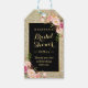 Merci pour l'étiquette de cadeau de shower de mariée avec paillettes dorées et fleurs roses.