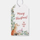 Une jolie illustration d'un renard entouré de verdure de Noël et de baies. Personnalisez facilement le salut et le nom en quelques clics seulement.