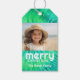 Étiquettes-cadeau Retro Joyeux Noël Cravate-Dye Photo Turquoise les