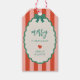 Étiquettes-cadeau Rétro rose, rouge et vert rayé Joyeux Noël