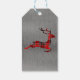 Élégant et tendance rouge plaid leaping rennes étiquettes cadeaux qui peuvent être personnalisées.