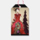 (REMARQUE : Ce design est également disponible dans un ton peau plus foncé.) Cette étiquette Afrocenic Christmas Gift Tag présente une photo d'un arbre de vacances contemporain fait d'une robe de mannequin. Le corps est une robe rouge paillée à manches courtes et le fond est fait de verdure artificielle décorée de fleurs rouges et d'ornements de violet, rouge et or. Le mannequin possède un grand collier audacieux et un bracelet assorti aux mêmes couleurs. Les dreadlocks de style afro-américain sur cette Diva complètent la déclaration de mode. Une silhouette noire de sapin de Noël se dresse dans l'arrière - plan, avec une bordure noire. Le texte en arrière dit : 'Joyeux Noël' et 'A et De' pour le nom de vos destinataires. Tout le texte peut être modifié ou supprimé pour personnalisation. Les étiquettes cadeaux de Noël sont accompagnées d'un ficelle de coordination rouge et blanc. Photographie de Glenda Motsavage, auteur et écrivain de voyage basé en Floride.