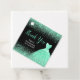 Une belle robe d'aquarelle élégante à thème vert clair sur un arrière - plan noir avec fausse parties scintillant en haut et en bas de la balise Favor. Tout le texte peut être personnalisé selon vos besoins.