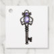 Étiquettes de faveur gothiques vintage avec une clé antique ornée d'un saphir et un motif de dentelle douce au verso.