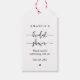 Personnalisez ce script noir simple, romantique moderne, avec votre tag cadeau de Fête des mariées, avec vos messages de remerciement et votre thème de couleur.