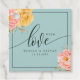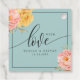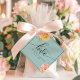 Express votre gratitude avec ces élégantes peony fleurie et mariage rose. La délicate aquarelle présente des fleurs roses et jaunes sur un arrière - plan bleu turquoise, créant une atmosphère romantique et charmante. Personnalisez les étiquettes avec vos noms et la date du mariage pour une touche unique et chaleureuse.