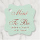 Balises de faveur de mariage pour un thème de couleurs mariage de menthe et or rose. L'arrière - plan est de couleur vert menthe. Les mots "Mint To Be" sont écrits en or (faux) rose, dans un élégant script calligraphique. Sous eux, les noms et la date sont écrits en petits casquette, dans une couleur similaire.