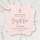 Modern Girl Baptism merci tags avec arrière - plan rose rousse, croix d'or rose et script de typographie "Baptême" en écriture manuscrite en or rose. Personnalisez davantage avec un nom et une date.