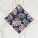 Blush rose et or tropical feuille bleu marine Merci de mariage préféré tag. Il présente des feuilles de Fromage Leaf Philodendron (Monstera deliciosa) ou de Fromage Suisse Plante et feuilles de palme en rose vif avec contour doré sur arrière - plan de marine.