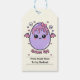 This unique gift tag features a lovable lavender purple Easter egg character with big sparkly eyes containing tiny skull reflections and the sweetest little fangs. The egg comes to life with playful pink dripping slime effect cascading from the top, creating that perfect balance between sweet and spooky. Adorned with a charming pink bow and delicate bat wings, this design captures the essence of creepy-cute spring vibes.