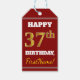 Étiquettes-cadeau Rouge, Faux Gold 37e anniversaire + Nom personnali