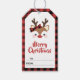 Étiquettes-cadeau Rouge Reindeer Cute Plaid Joyeux Noël À De