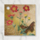 Ce design serait parfait pour les fêtes et les mariages de style rustique et vintage : fleurs de geum rouges vintage et papillon sur un fond parchemin vieilli.