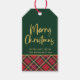 Étiquettes-cadeau Rouge Vert Plaid Gold Foil Script Joyeux Noël