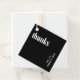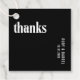 Marche moderne de faveur de mariage avec un design simple et minimal avec "merci" en gras de typographie blanche sur un arrière - plan noir. Les couleurs peuvent être modifiées en n'importe quelle couleur que vous choisissez dans l'outil d'édition de conception. Le dos a votre message personnalisé. Ces étiquettes de faveur contemporaines de mariage sont idéales pour un mariage à thème goth ou halloween.