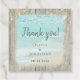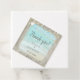 Ces plaques de faveur pour mariage côtier rustique présentent une scène de vagues d'océan bleu aqua s'écrasant contre la plage, avec un cadre de bois patiné, et des lampes à cordes accentant le sommet.