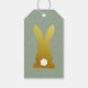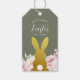 Élégante étiquette cadeau de Pâques personnalisée avec un lapin d'or avec une queue moelleuse, de belles fleurs pastel aquarelle, et élégant arrière - plan de papier kraft vert olive simulé. Parfait pour les fêtes de Pâques ou les cadeaux de Pâques. Customisez avec un bref message d'accueil et un nom.