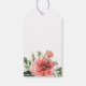 Bouquet floral d'aquarelle dans les tons coraux, rose et pêche avec feuillage coulant, étiquettes de sacs cadeaux de bienvenue mariages. Personnalisez et customisez le style, la couleur et la taille de la police de texte.