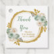 Beautiful birthday party favor tag with a sage green and gold faux glitter frame with floral flower arrangements. Perfect for a birthday party. The words can be changed to suit your own details or requirements