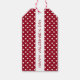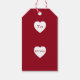 L'avant de ces adorables étiquettes cadeaux ont des coeurs blancs sur un arrière - plan rouge avec un ruban blanc que vous pouvez personnaliser avec votre choix de texte, Le dos rouge solide avec deux coeurs blancs peut également être personnalisé. Du papier d'emballage assorti, des sacs cadeaux et des ballotins sont également disponibles.