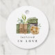 Ajoutez une touche finale douce à vos savons faits main avec ces étiquettes rondes à thème botanique et tons verts naturels. Le devant indique « lathered in love » avec des savons artisanaux illustrés, tandis que le verso peut être personnalisé avec le type de savon et le nom de l'expéditeur. Parfait pour les fêtes de mariage, les mariages et les cadeaux à thème spa. Conçu par Redwood & Vine Design Co.