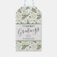 Joyeuses Fêtes de Noël moderne Étiquettes cadeaux avec sainte, mistletoe, baies de Noël et épinette en rouge et vert sur blanc.
