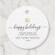 Tag cadeau de vacances minimaliste moderne avec élégante calligraphie script lisant HAPPY HOLIDAYS sous un flocon doré imprimé. Vous trouverez ci-dessous un espace pour votre message personnalisé ainsi qu'un espace supplémentaire au fond pour des salutations plus détaillées.