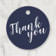 Étiquettes Cadeau Script moderne Mariage bleu marine Merci