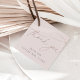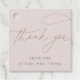 Des étiquettes de faveur simples et élégantes présentent "merci" dans un script de calligraphie manuscrit moderne sur un fond taupe rose doux. Personnalisez avec votre texte personnalisé ci-dessous; illustré avec "de la part de la future Mme [nom]".