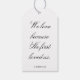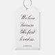 “We love because He first loved us.” — 1 JOHN 4:19. Create beautiful tags with faith-based sayings about love for your wedding or bridal shower centerpieces.