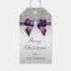 Élégant, personnalisé marque-cadeau de Noël argent et violet avec une belle étincelle d'argent paillettes d'image paillettes bijoux, pierres précieuses, motif de parties scintillant, mignonette, sophistiquée imprimé pourpre / violet arcs et rubans et jolis diamants numériques bijoux et gris foncé sur un arrière - plan en dégradé d'argent. Veuillez noter : il s'agit de graphiques plats imprimés - pas de pièces surélevées. Beau, élégant, chic, tendance, moderne, brillant et design glamour. Le texte, la police et la couleur de la police peuvent tous être customisés. Si vous avez besoin d'aide pour customiser votre produit, veuillez me contacter par l'intermédiaire de mon magasin. Je serai heureux d'aider.