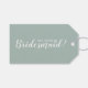 "Serez-Vous Ma Femme D'Accueil ?" Tags Cadeaux de Script Moderne avec le libellé "Will You Be My Bridesmaid?" en blanc style de police de script moderne avec les détails en blanc moderne sans serif police sur arrière - plan vert sage.
