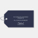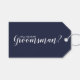 "Serez-Vous Mon Groomsman ?" Script moderne Marine Bleu Tags avec le libellé "Will You Be My Groomsman?" en blanc style de police de script moderne avec détails en blanc moderne sans serif police sur bleu marine arrière - plan.