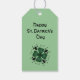 Un beau shamrock avec des tourbillons et des symboles Fleur de lis sur les étiquettes cadeaux pour personnaliser.
