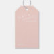 This tag card features title 'share a memory' in white modern script font style and details in white modern sans serif font style on blush pink background.