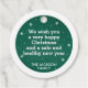 Marque ronde de Noël avec silhouettes de pins blancs avec des flocons de neige et un traîneau tiré par le cheval sur un arrière - plan vert, avec le libellé Silent nuit en lettres manuscrites. Le dos de la balise cadeau est facilement personnalisable en ajoutant votre propre message et votre nom de famille.